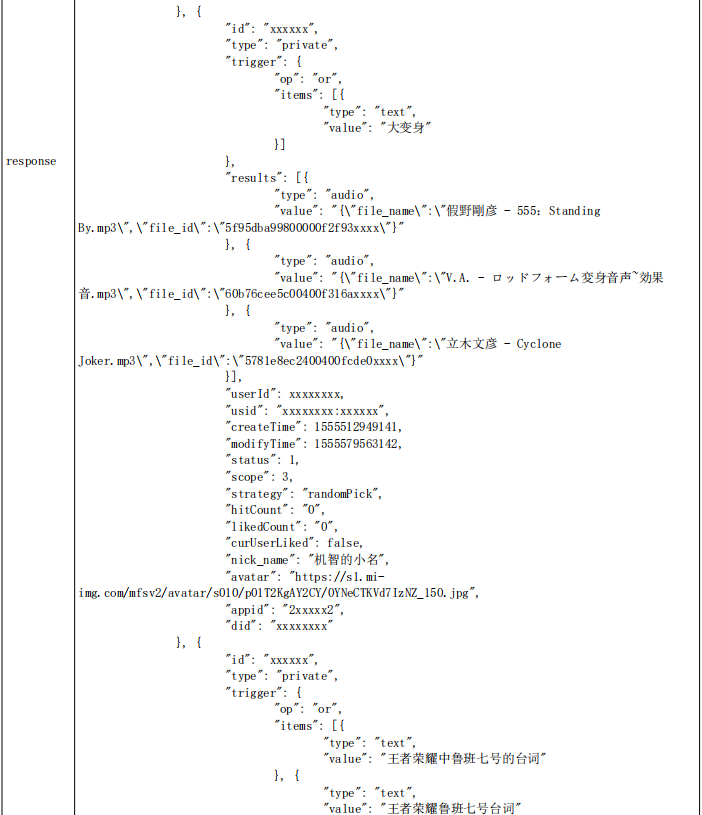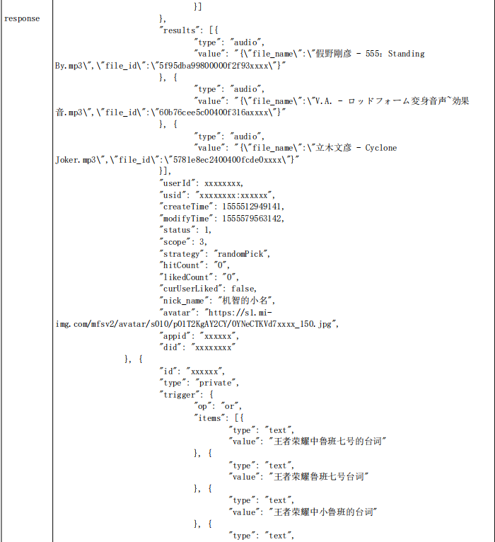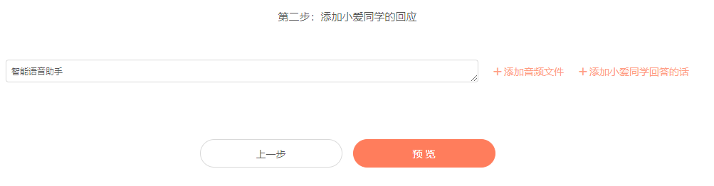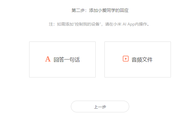 5、对于小爱同学的答复,可以选择回答为一句话或者是其他音频文件,开发者根据自己的需求进行选择,也支持文字和音频文件同时回复。