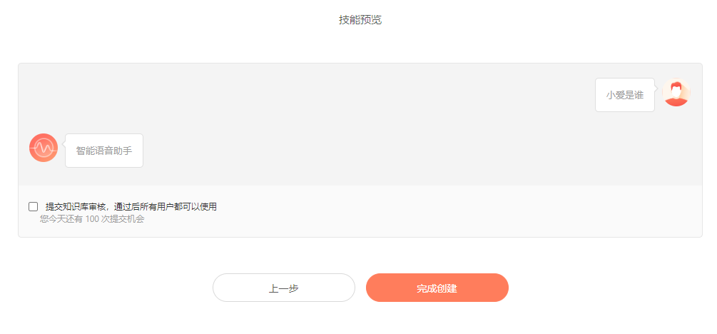 创建完成后,开发者可以点击“预览”,查看创建的训练计划。开发者也可以提交知识库审核,待审核通过后,所有用户都可以使用该技能。