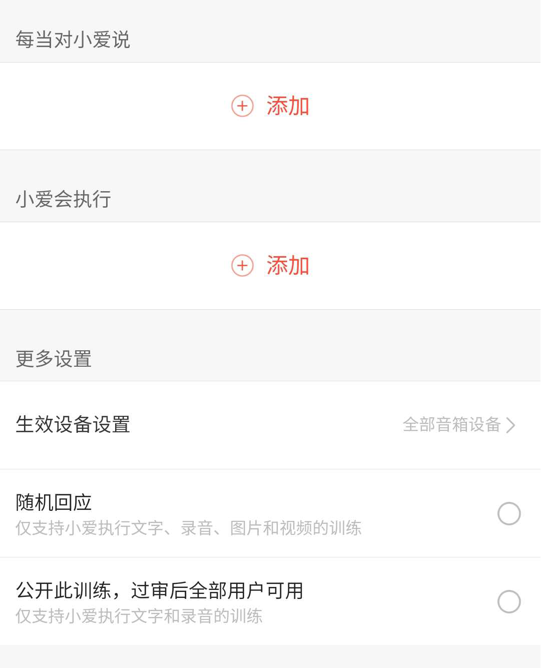 通过创建专属训练计划,用户可以在设备上进行使用,也可以将个人创建的技能提交到小爱技能库中,获取大量的贡献值,让其他所有的用户都能使用该技能。